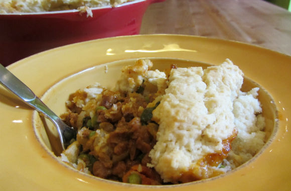 I decided to add in a bunch more vegetables to this recipe including baby spinach to fool myself that I am not just eating this for the biscuit topping. I’m not, OKAY!