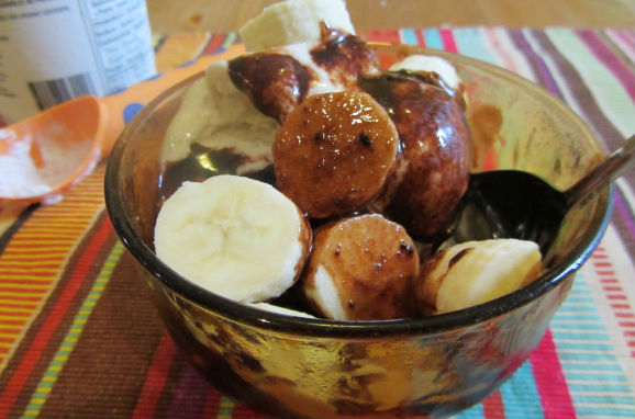 There is no other food that I love more than Mom’s chocolate sauce. I am mostly a savory over sweet person but nothing beats this. Mom’s chocolate sauce can be made on the stove top but the microwave is where it is at. This was a special treat for me growing up but now as a semi-adult (key word semi) this recipe is a little too easy. Of course it tastes delicious on vanilla ice cream but I love it over sliced bananas. Or both! Excuse me while I go dive my bare hands into the bowl above.