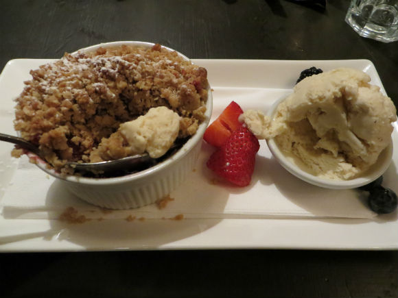 Manna Fruit Crumble: Made with seasonal fresh fruit and served with ice cream.