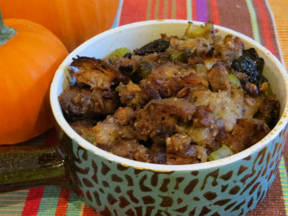 I have been known to cook a holiday dinner in the off season. Mashed potatoes, stuffing and vegan roast are as delicious in July as any other time of year. I am actually eating leftover Thanksgiving mashed potatoes as I write this at 9:30 pm. Hey, I’m vegan, cut me some slack. I can’t do everything healthy. Anyways, stuffing is one of those genius foods that I don’t know what I would do without. This specific version was one part classic mom’s recipe one part whatever was in my fridge when I whipped up a vegan Thanksgiving in 40 minutes. Yes I did that. Give this recipe a go for your next holiday gathering. Or tomorrow. That is what I would do.