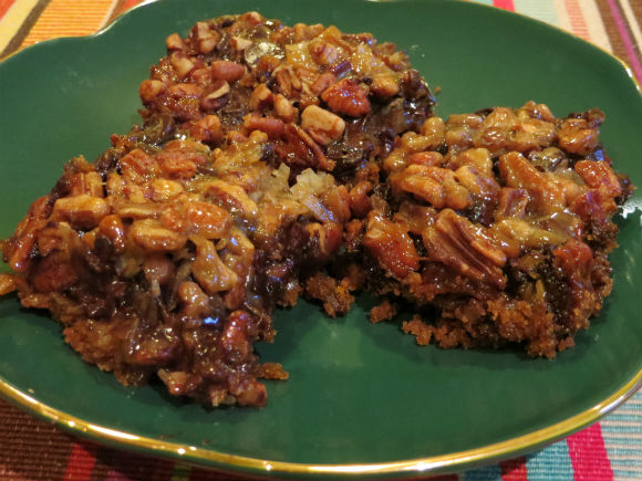 There are really no hidden ingredients in Hello Dollies. That is what makes them so attractive. All of the delicious ingredients are just sitting in the pan for you to drool over. Pecans, chocolate chips, coconut and a crumby crust. Yes please!