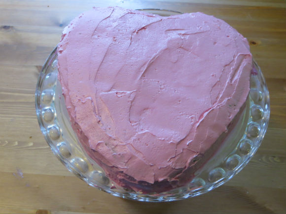 Remove the cooled cake and ice it! Serve a nice big slice to your Valentine.