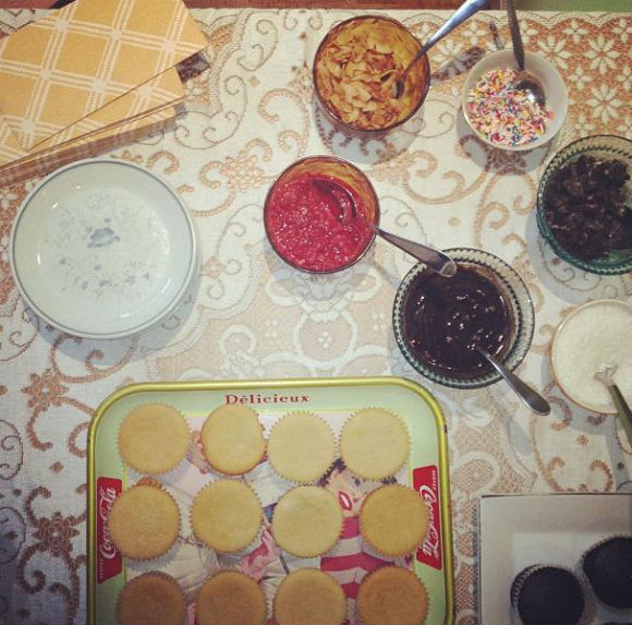 Me and my roommates like to eat. So, we like to host parties with the central theme of eating. This weekend, my roomie and a few other friends came over for a vegan baking party. I highly recommend you do the same. I set up a cupcake bar with vanilla and chocolate cupcakes, vanilla and chocolate icing and six different toppings. I think I ate five cupcakes that day and probably three since then… Err, bootcamp class anyone? Check out some of the pictures below.