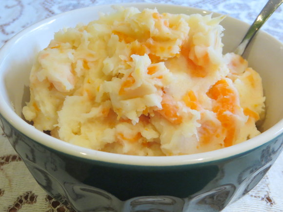 Drain the vegetables and transfer back into the pot. Add the soy milk and margarine to the pot. Mash until the potatoes and carrots are the texture you like. I enjoy them a bit chunky usually but these do better to be smooth.
