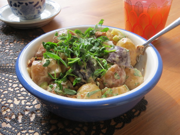 This recipe is adapted from Food and Wine’s Potato Salad With Bacon and Barbecue Sauce.